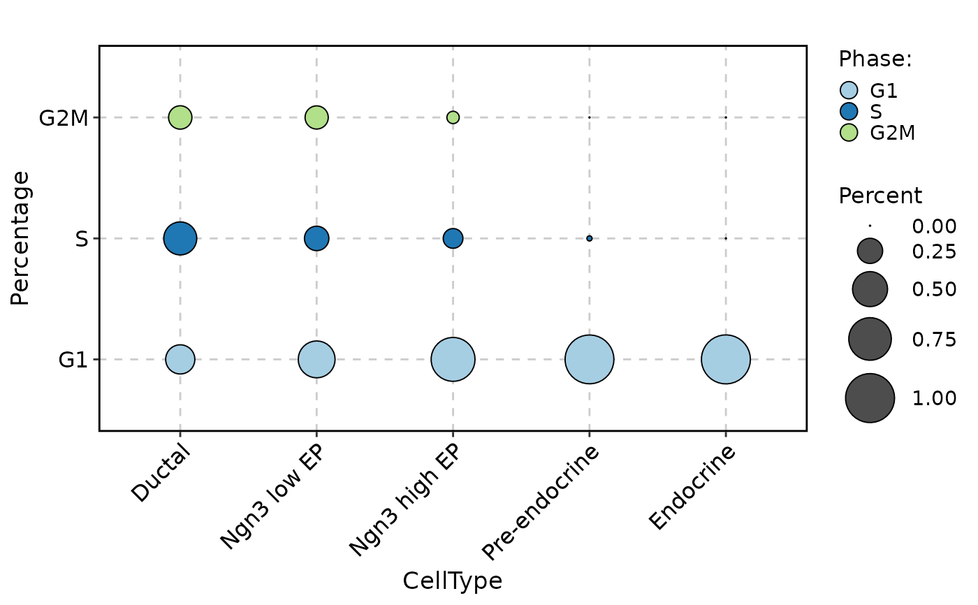 CellStatPlot(pancreas_sub, stat.by = "Phase", plot_type = "dot")