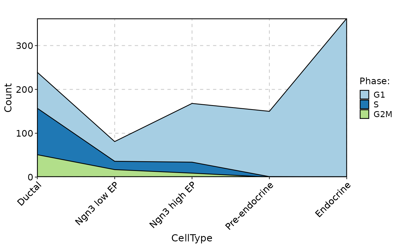 CellStatPlot(pancreas_sub, stat.by = "Phase", group.by = "CellType", stat_type = "count", plot_type = "area")