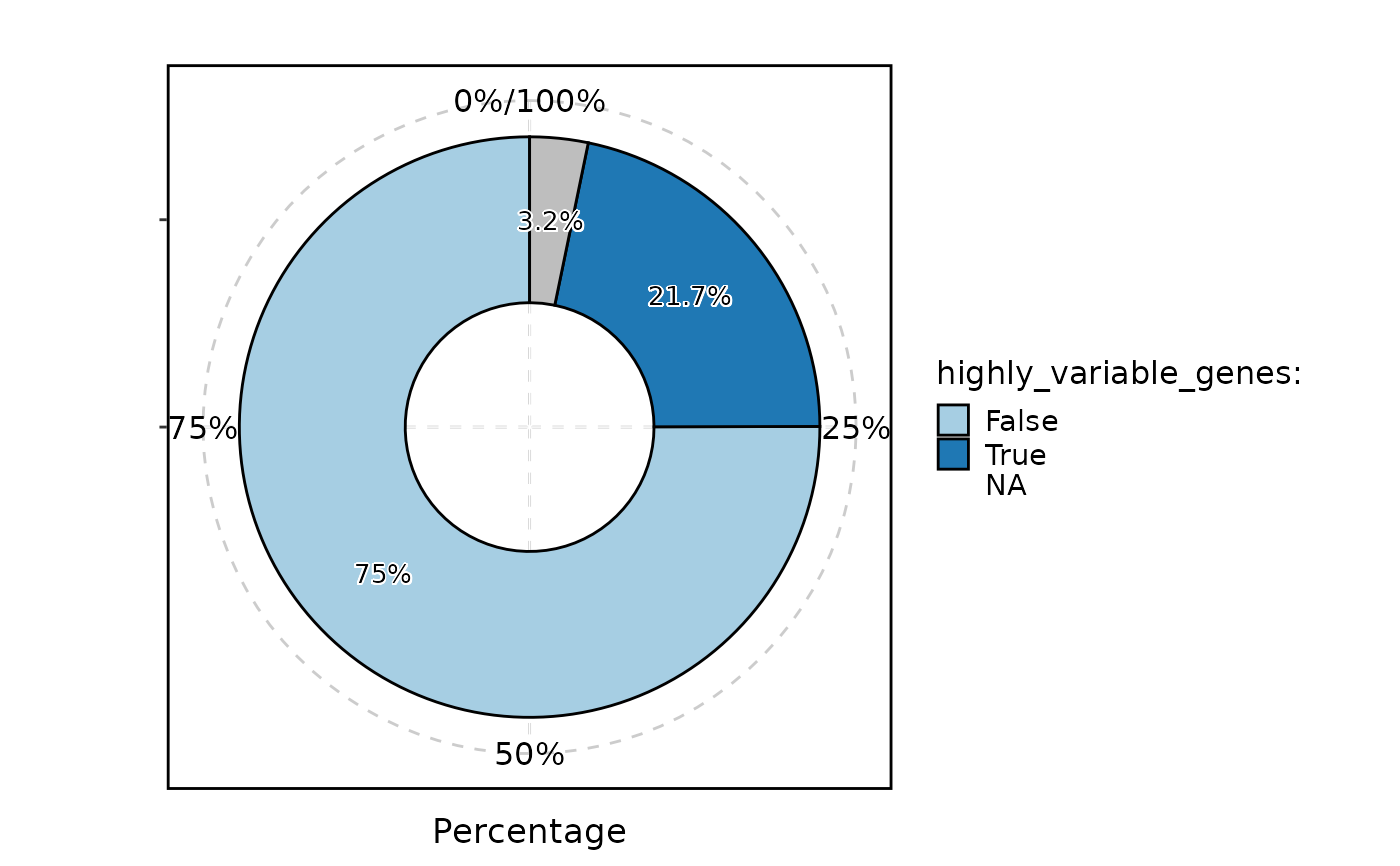 StatPlot(pancreas_sub[["RNA"]]@meta.features, stat.by = "highly_variable_genes", plot_type = "ring", label = TRUE)
