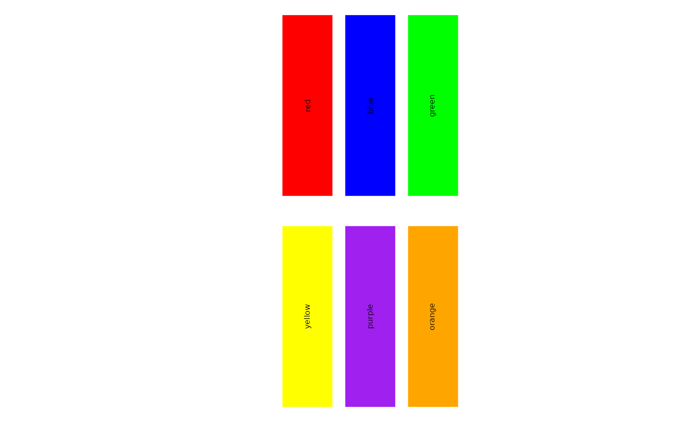 show_palettes(palettes = list(c("red", "blue", "green"), c("yellow", "purple", "orange")))