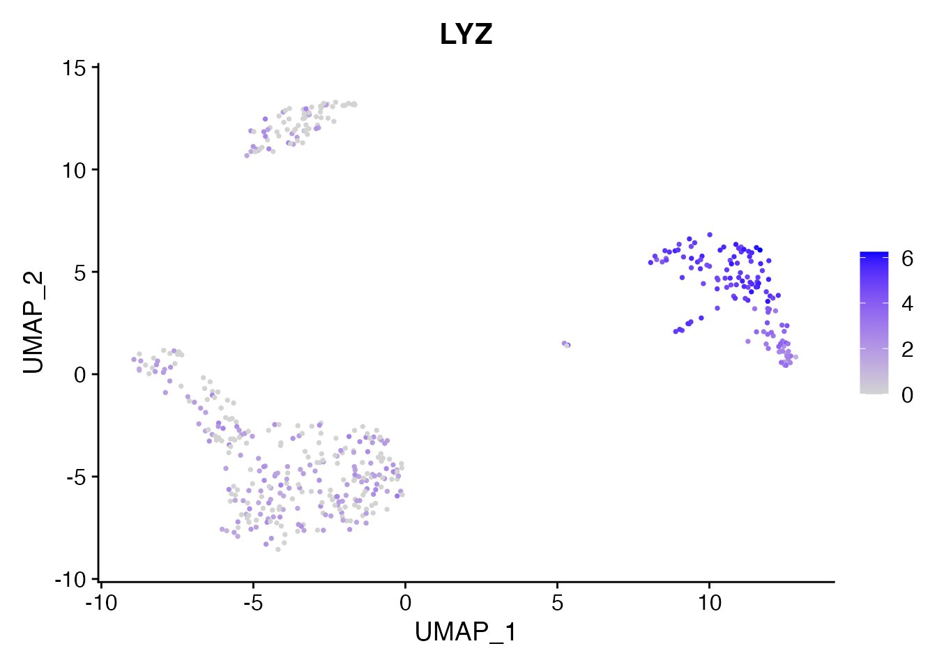 We can also visualize a marker gene. LYZ is highly expressed in monocytes: