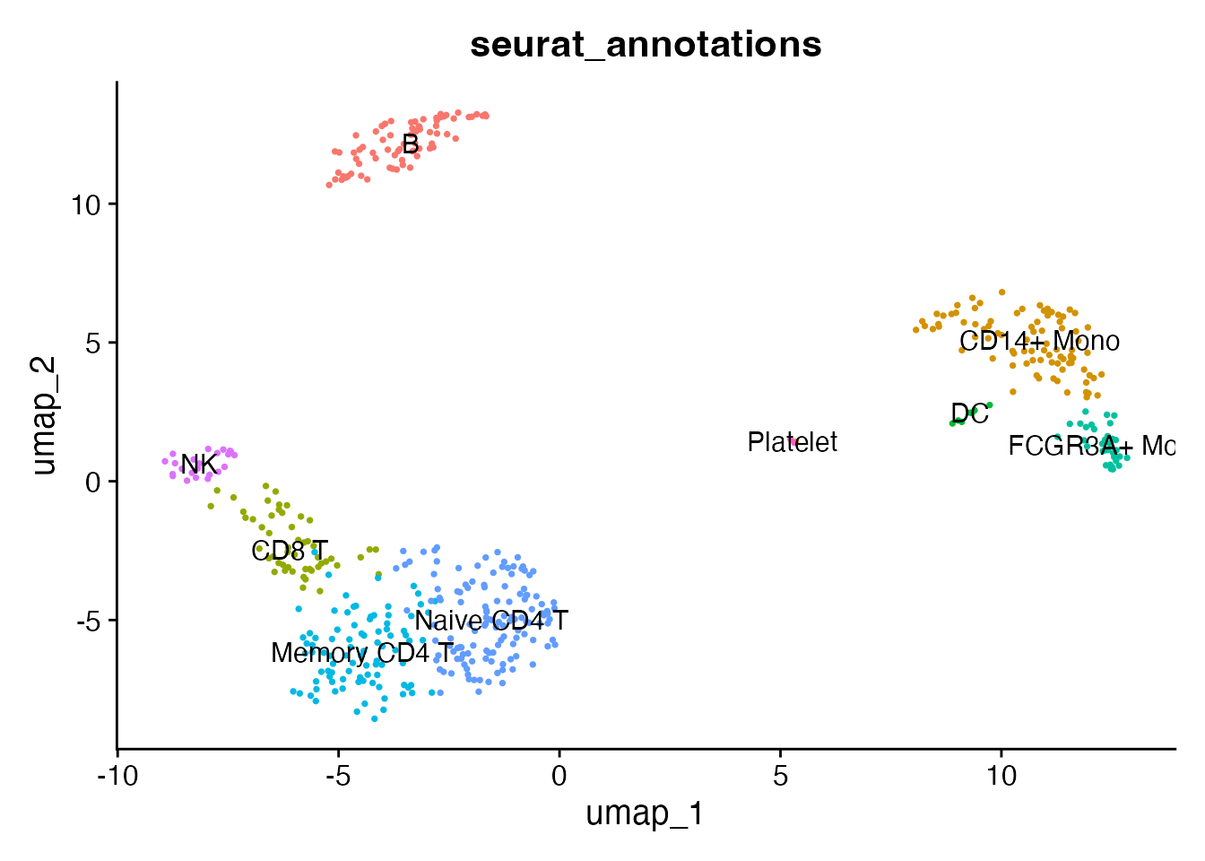 p1 <- DimPlot(pbmc_seurat, reduction = "umap", group.by = "seurat_annotations",