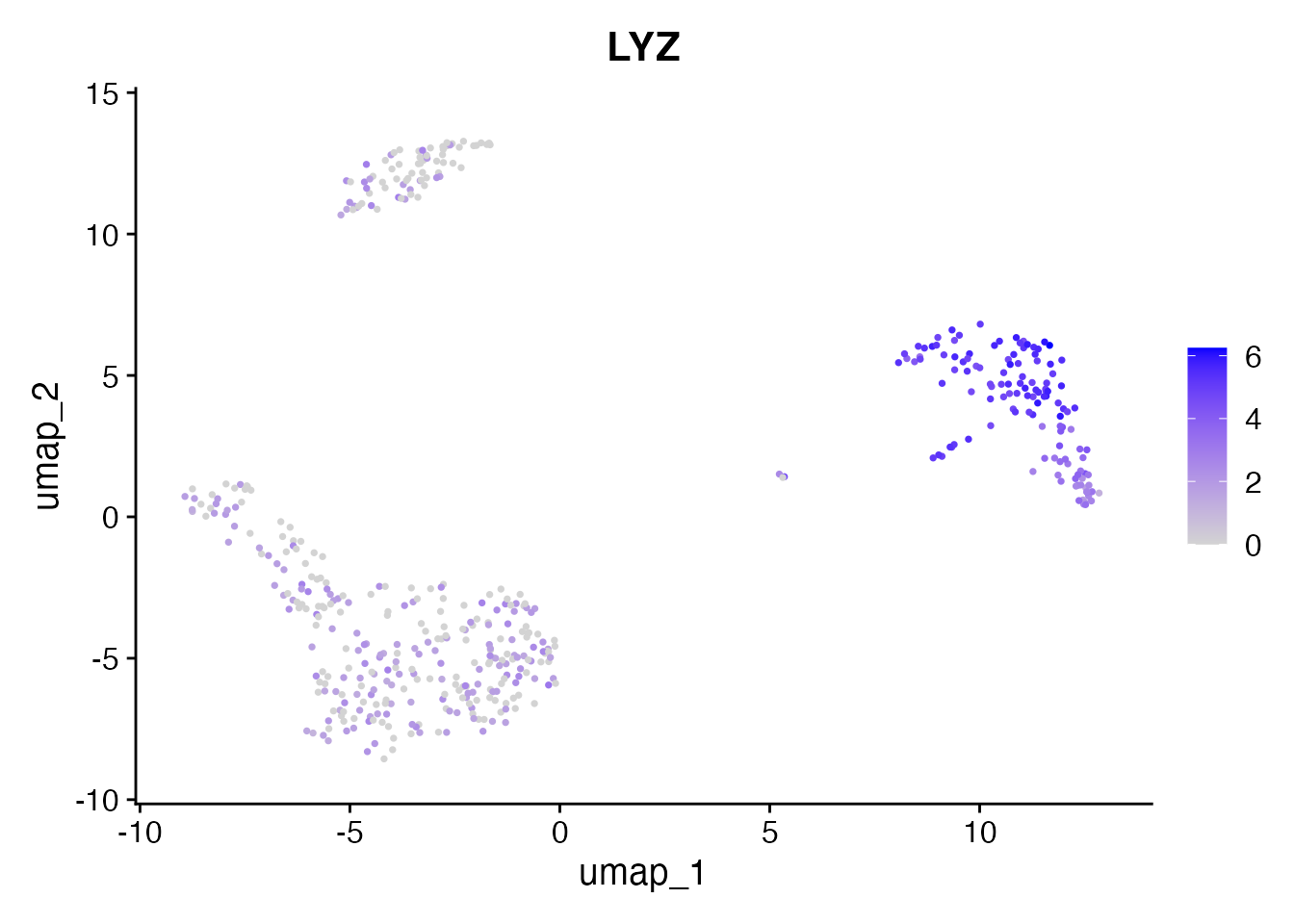 FeaturePlot(pbmc, features = "LYZ", pt.size = 0.5)